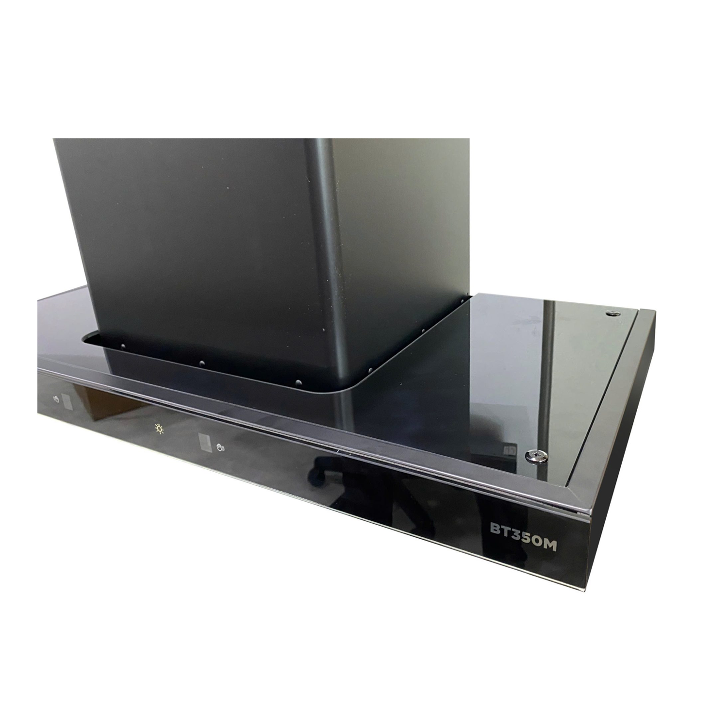 Thiết kế sang trọng, hiện đại: Sản phẩm có kiểu dáng toa, treo áp tường. Máy hút mùi cao cấp Meeren BT350M có thân máy bằng inox, kính chịu nhiệt cao, sang trọng, góp phần tô điểm thêm nét sang trọng cho không gian phòng bếp gia đình bạn. Kích thước sản phẩm là 700x 350x 505mm nên phù hợp với không gian vừa và nhỏ